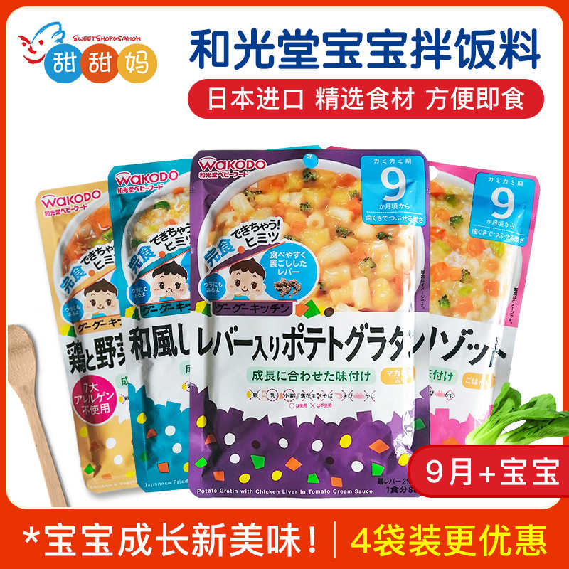 日本wakodo和光堂嬰幼兒副食品粥米粉拌飯料肉泥9月起4袋組合裝